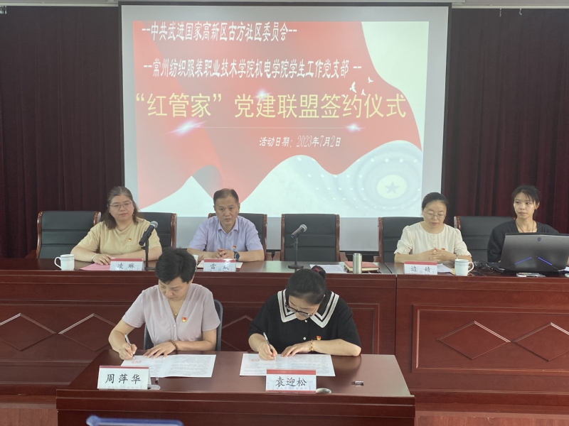 活动现场,机电学院电子电气教工党支部书记宋黎菁、学生工作党支部书记袁迎松,同古方社区党委书记周萍华完成了古方社区“红管家”党建联盟签约仪式。武进高新区北区党委副书记雷成希望双方牢记习近平总书记嘱托,在新的赶考之路上书写不负时代、不负人民的崭新答卷。