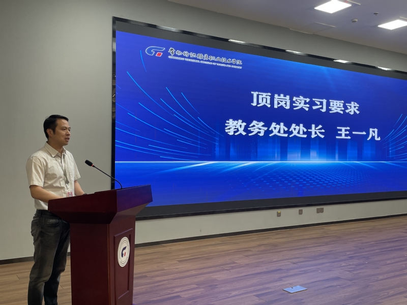 教务处处长王一凡对学生顶岗实习工作作了深入而细致的要求,他强调了顶岗实习的具体规范、岗位标准、流程管理及考核细节,鼓励学生们根据自身专业特点,寻找适宜的实习机会,实现理论知识与实际操作的无缝对接。鼓励学生勇于面对实习挑战,积极求知,不断提升团队合作、创新思维及解决问题的实际能力。
