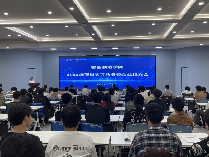 为切实贯彻学校关于学生顶岗实习的工作部署,智能制造学院于2024年6月5日举办了2022级学生顶岗实习动员暨企业推介会,旨在为即将踏上实习征程的学子构建一个直面职场的互动舞台,深化其对行业动态的认知,明晰个人职业道路,并顺畅过渡至职场生涯。学校党委委员、副校长马昀,教务处处长王一凡,智能制造学院党政领导、专业负责人、2022级班主任、辅导员及全体学生参加了本次会议,会议由智能制造学院党总支书记肖海慧主持,分两阶段进行。