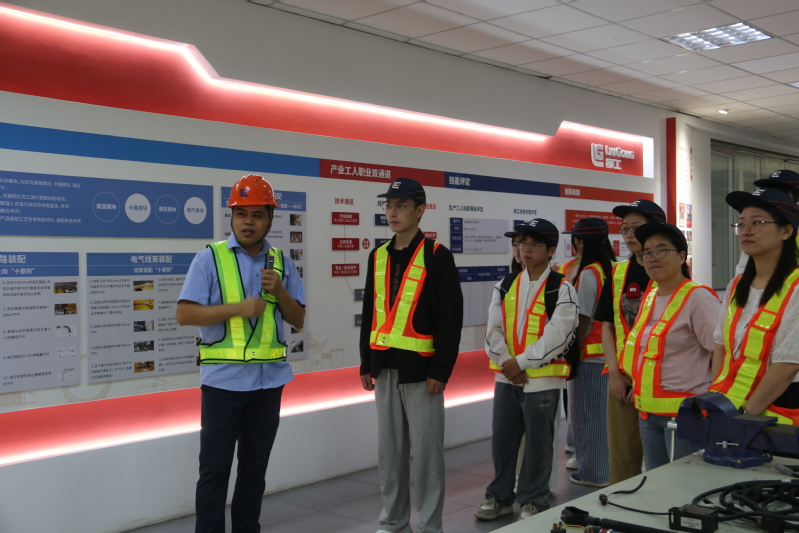 柳工常州机械有限公司项目工程师梁修影带领同学们参观了企业生产线,深入了解柳工集团企业发展史和企业文化,近距离感受了柳工人“实干担当、敢于拼搏、不断突破”的精神。在梁修影劳模(工匠)创新工作室,梁修影详细介绍了工作室成立背景、发展历程、主要研究方向、取得主要成果等,回顾了工作室一大批工匠的奋斗历程,并结合个人成长发展经历,勉励大家要树立远大理想,坚定信念,刻苦学习,勇于实践。