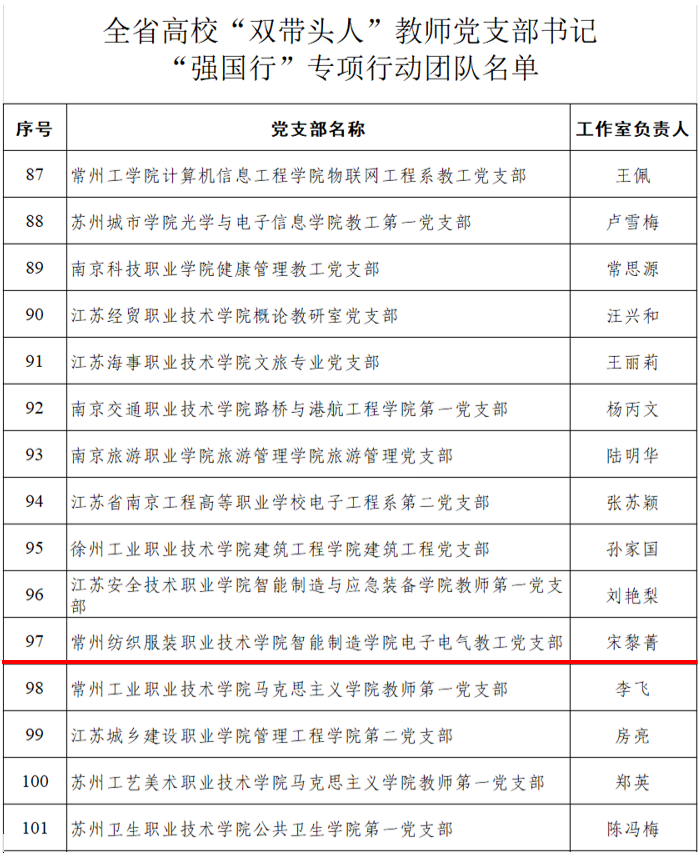 近日,省委教育工委公布了全省高校“双带头人”教师党支部书记“强国行”专项行动团队名单,我校智能制造学院电子电气教工党支部成功入选全省团队。