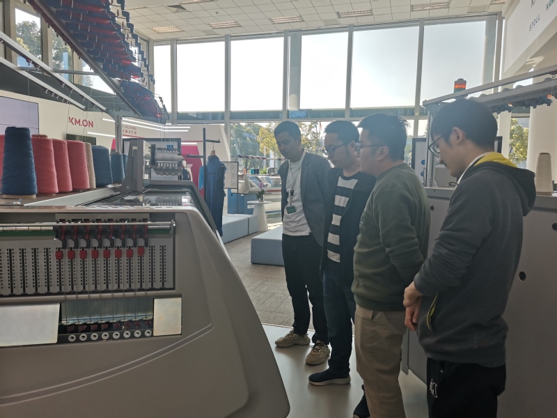 交流会上,李爱红详细介绍了我校智能制造学院专业与特色以及发展思路,她指出,人才的培养一定要以企业需求为出发点,要与企业深度融合、精准对接,突出“服务好、支撑好”智能纺织装备产业链企业,共同探索符合高端纺织装备产业特色的人才培养模式。她强调校企合作一定要遵循顶层设计、系统思维、合作共赢的理念,重落实的办事态度,着力推进校企全面合作,推动职业教育高质量发展。随后,校企双方就招人、育人、用人、留人等问题进行了深入讨论,并参观了STOLL展厅与一体化针织生产车间。