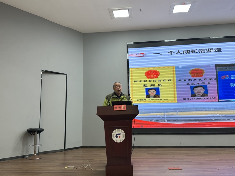 为激发学生工作党支部师生技能报国的热情,传承和弘扬工匠精神,培养新时代大国工匠,11月20日下午,智能制造学院学工支部开展主题党日活动,邀请中车集团戚墅堰机车车辆集团国家级技能大师工作室领办人、特级技师、省级产业教授潘德昌,为师生党员、入党积极分子、入党申请人和学生干部等开展“弘扬劳模精神争做创新先锋”专题讲座