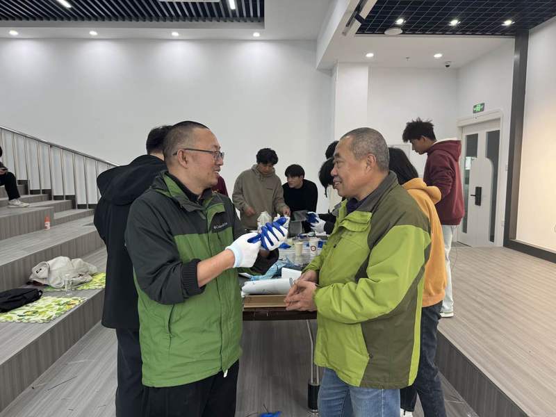 潘德昌教授,从个人成长、勤学苦练、勇于创新、心怀感恩、不忘初心等5个方面,详细而又生动的讲述了自己的奋斗历程,展现了一个大国工匠的家国情怀与责任担当,他勉励同学们要在今后的学习和工作中砥砺工匠精神。讲座结束后,潘德昌前往服装智慧工厂与参加实训的师生进一步交流,他提到作为新时代大学生对待学习工作要有耐心、细心和责任心,遇到困难挫折要敢于直面、勇于攻克。他鼓励现场的同学们刻苦学习、勇于创新,为自己的前途打好坚实的基础。