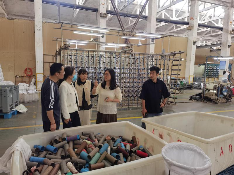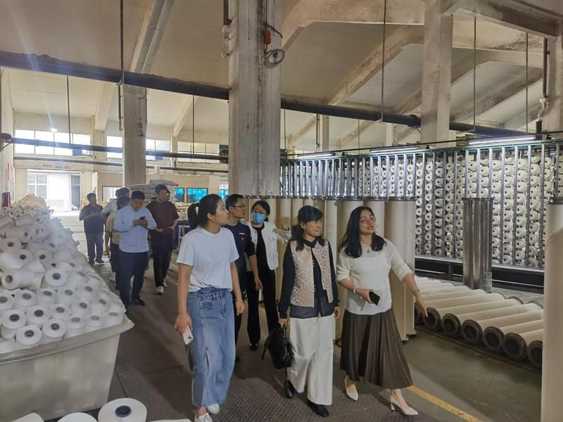随后,在企业工作人员的带领下,师生们深入生产一线,参观先进的纺织染整工艺。技术骨干现场讲解,将理论知识与实际操作紧密相连,让师生们直观感受到行业前沿技术的魅力。同学们认真聆听,积极提问,现场学习氛围浓厚。