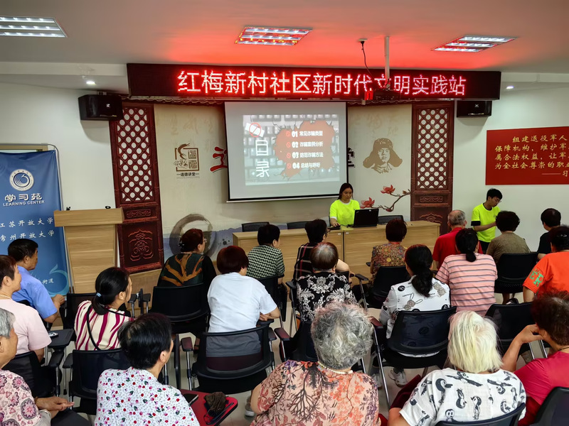 为预防各类诈骗案件的发生,全力维护老年人易受害群体的财产安全,让老年人真正认识到诈骗的危害性,加强对老年人易受害群体的反诈宣传教育,常州纺织服装职业技术学院智能制造学院“炎夏助老情,安全在身边”暑期社会实践团联合常州市红梅新村社区,在常州市红梅新村党群服务中心开展“全民反诈、你我同行”活动。