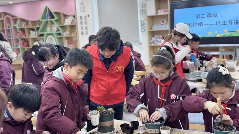 为弘扬志愿服务精神,倡导绿色发展理念,在植树节来临之际,3月10日,智能制造学院蓝领巾志愿服务团队走进古方社区,开展植树节主题志愿服务活动,本次活动也是学院三月志愿服务系列活动之一。志愿者们协助李公朴小学学生开展多肉种植实践,通过劳动体验与互动交流,引导小朋友们在实践中感受自然魅力,增强生态环保意识。